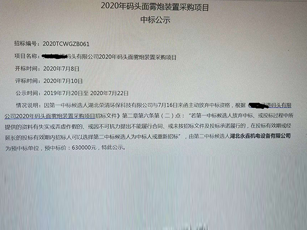 湖北咸阳本千新能源设备有限责任公司(4G网站)《霧炮中(zhōng)标公示》